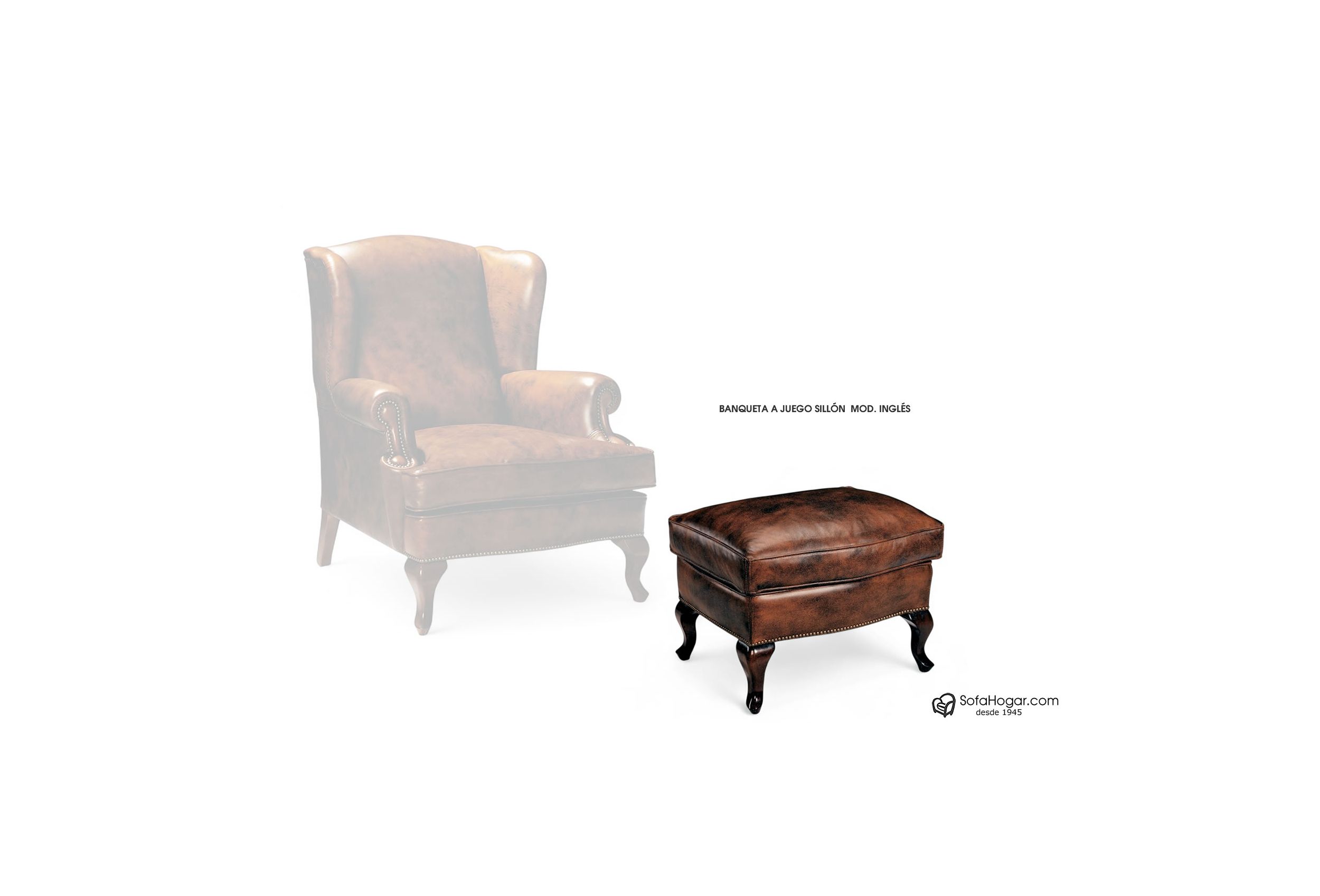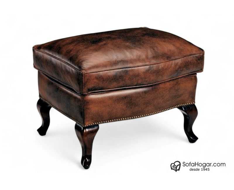 Banqueta Piel Natural - Auxiliar Complemento Sillones Orejeros Modelo INGLÉS