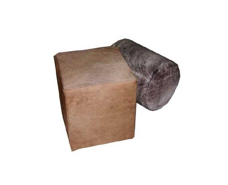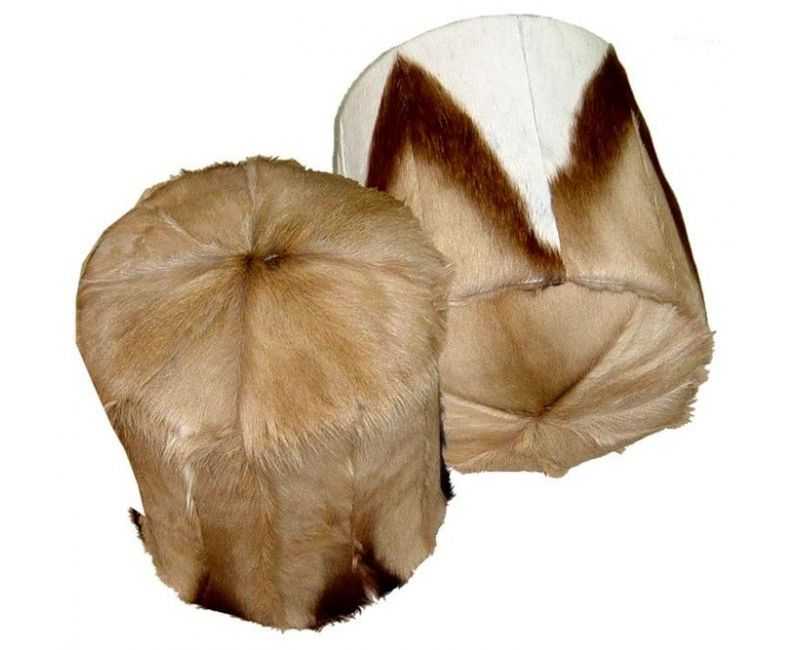 Taburetes y Puff en formato redondo, confeccionado totalmente en piel de gacela Sprinbok.