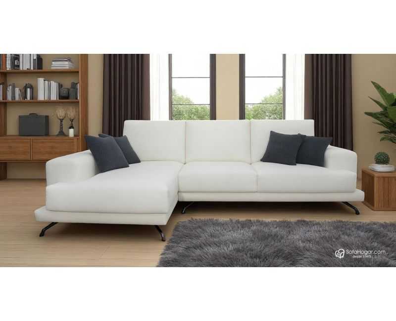 Sofá Chaise Longue Moderna Patas Altas Piel Natural, Artesana Modelo MICHEL