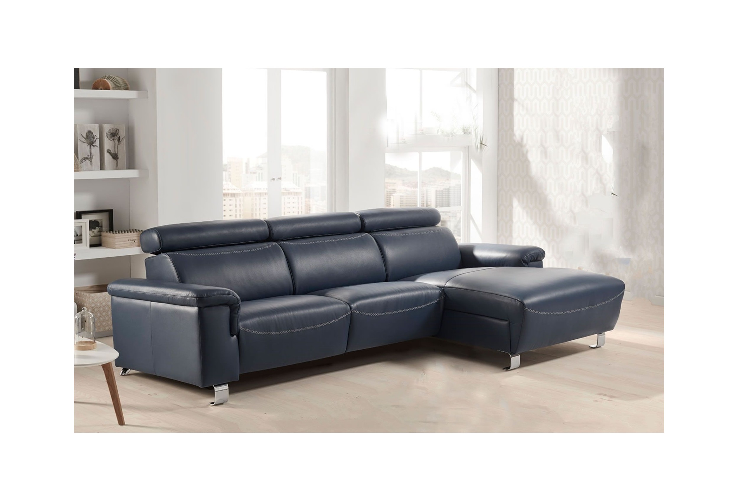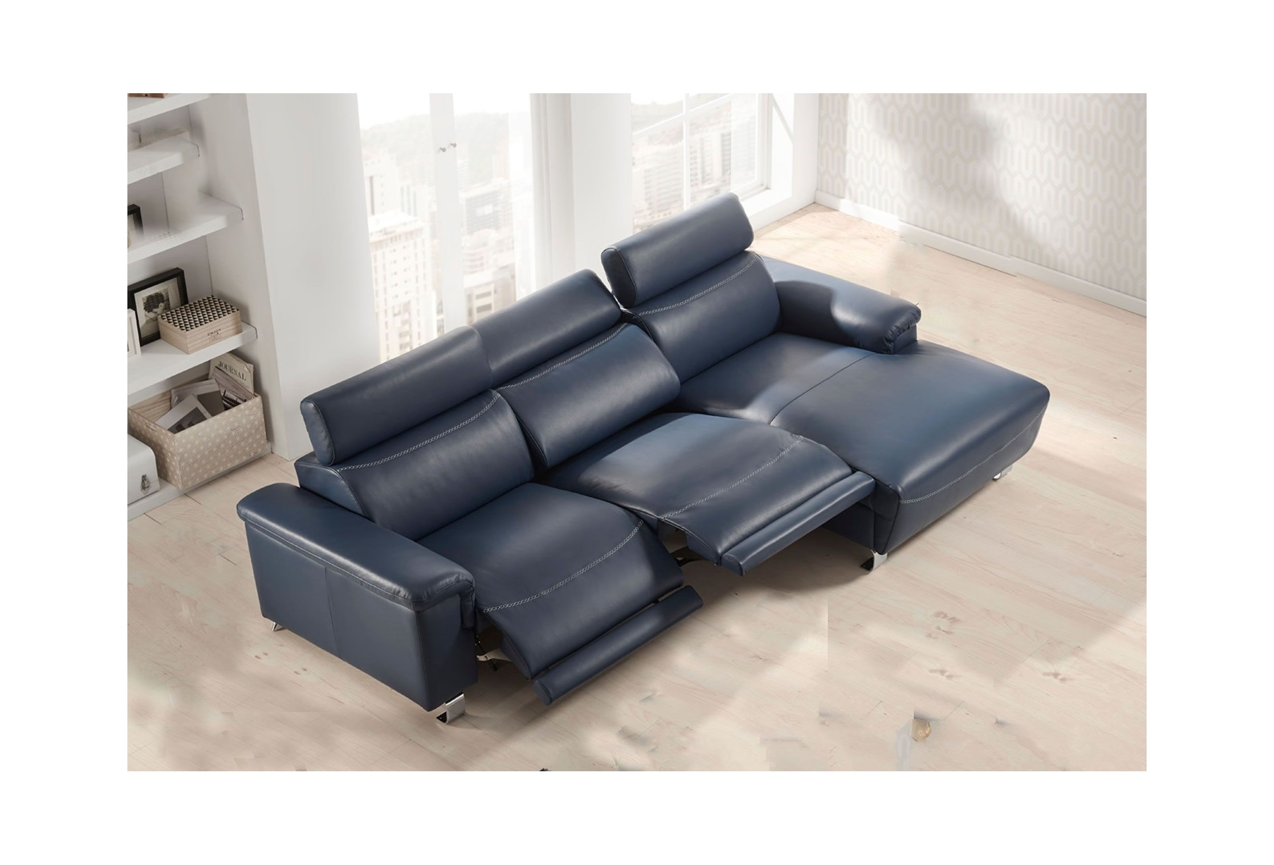 Sofá de Piel Natural Con Chaise Longue Relax Motor - Modelo CONVER