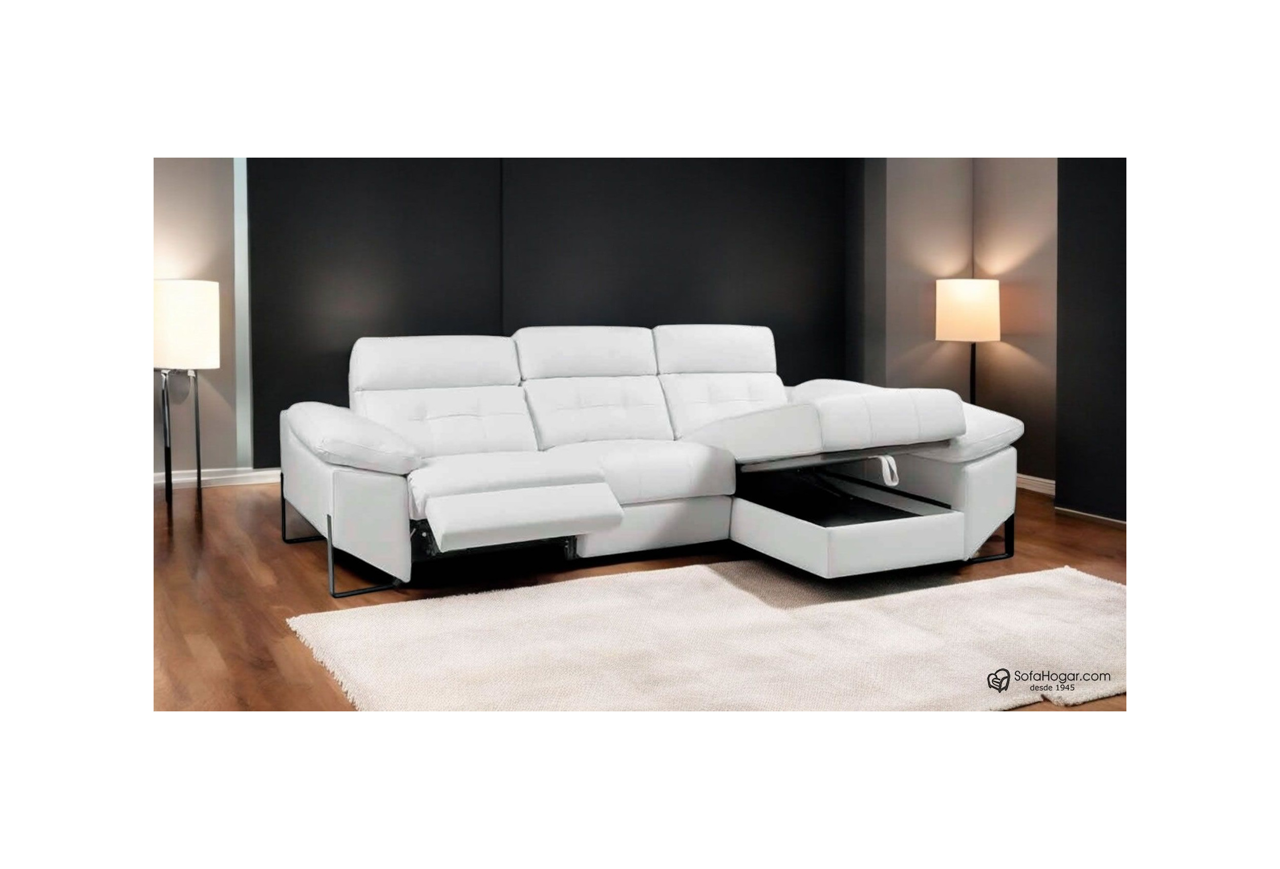 Chaise Longue 260, 290 y 320 cm - 4 Calidades Piel Natural Relax motor o Fijo
