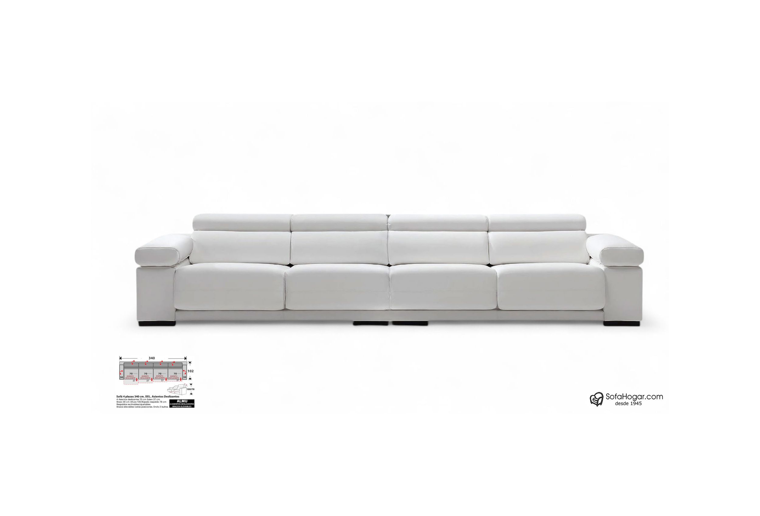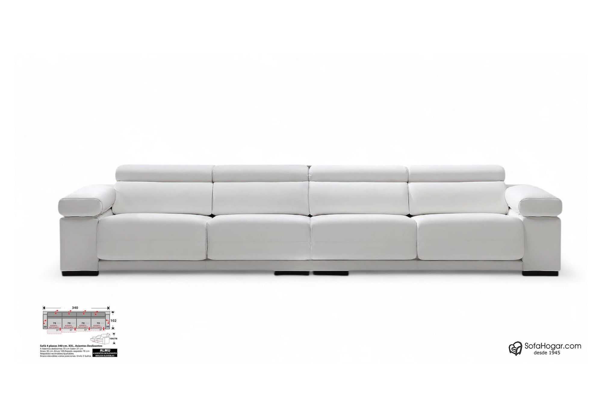 Cómodo, amplio y completo sofá que te brindará un descanso confortable en diferentes versiones, sofá de 2, 3 y 4 plazas en una estupenda medida especial XXL.