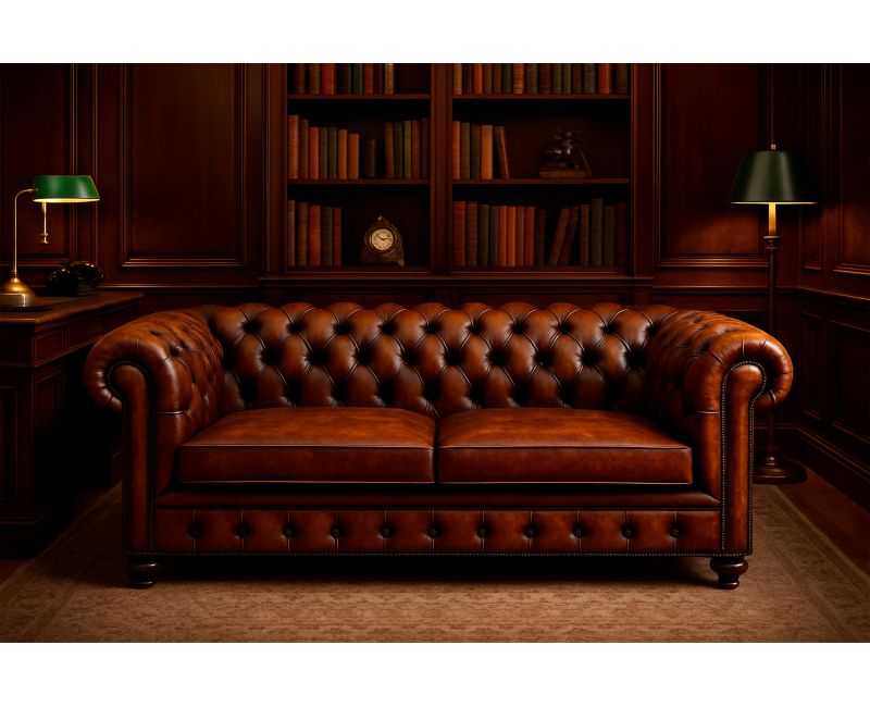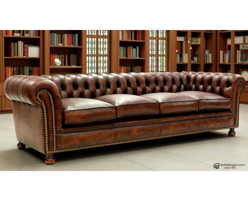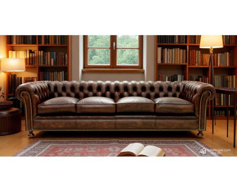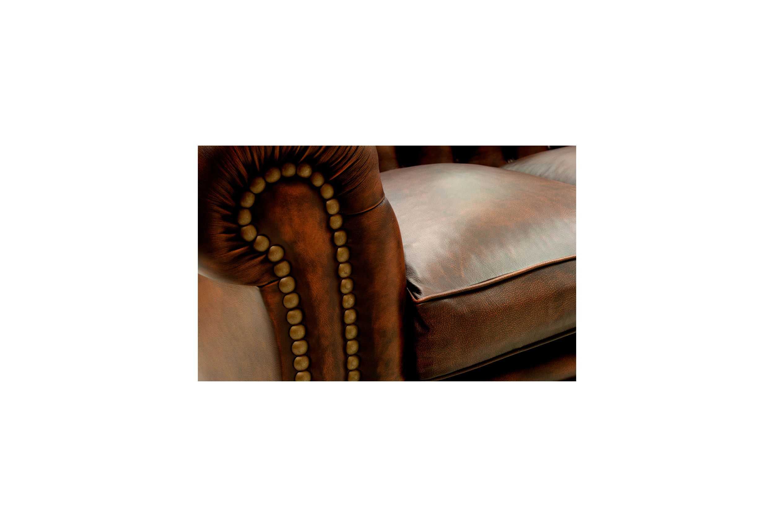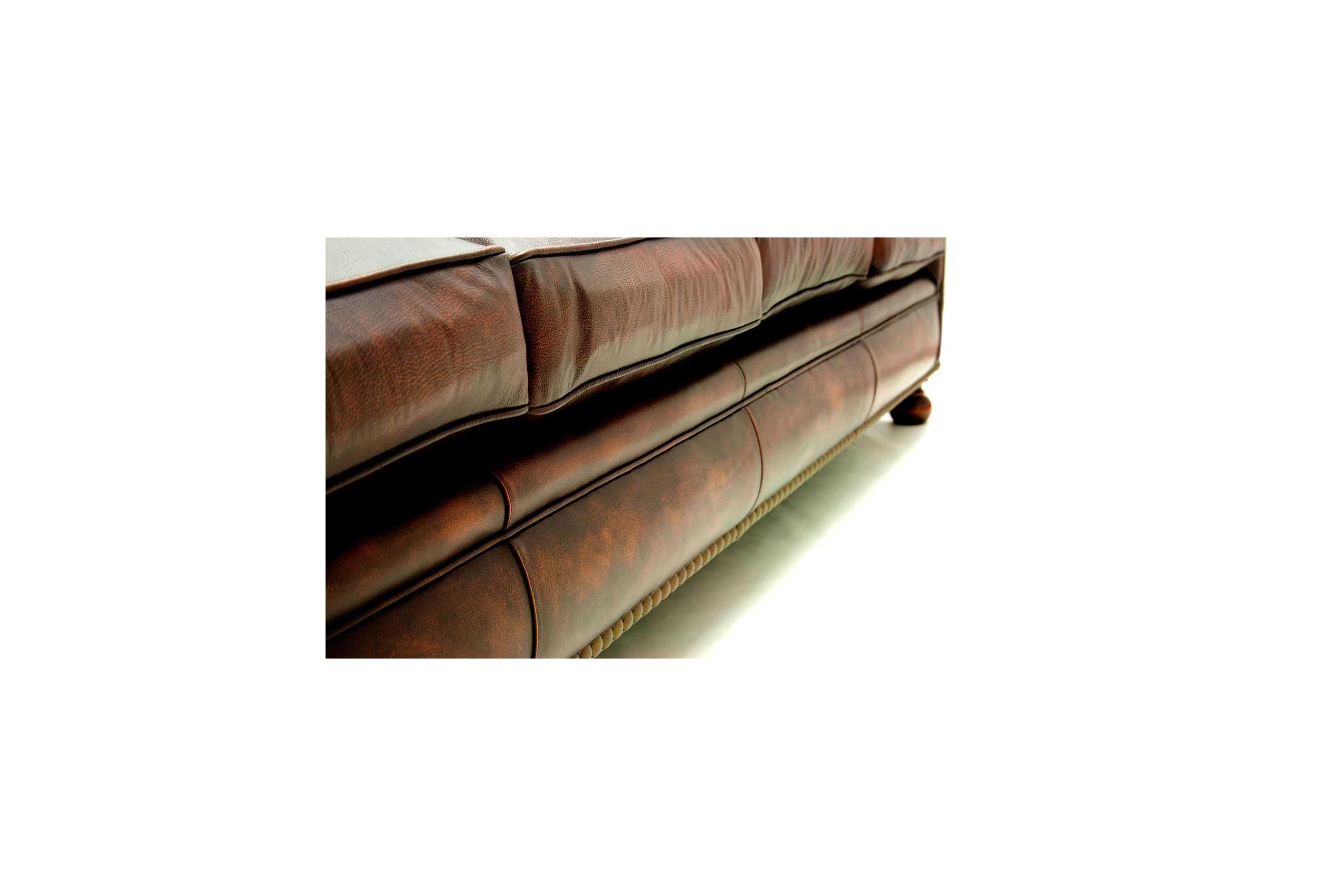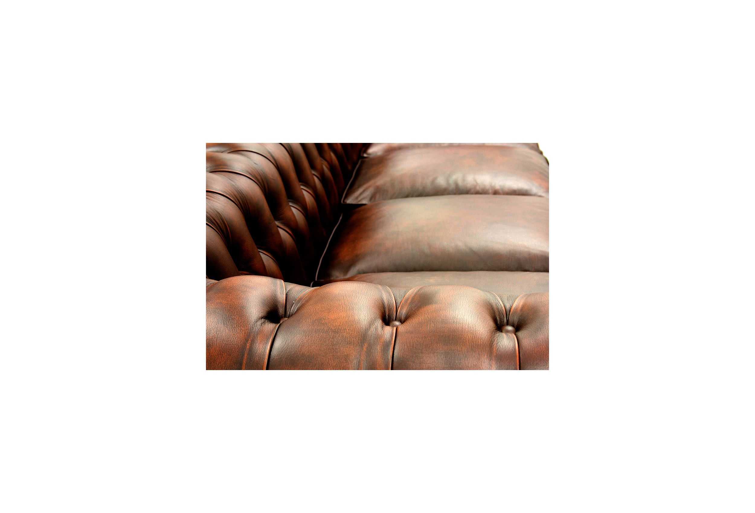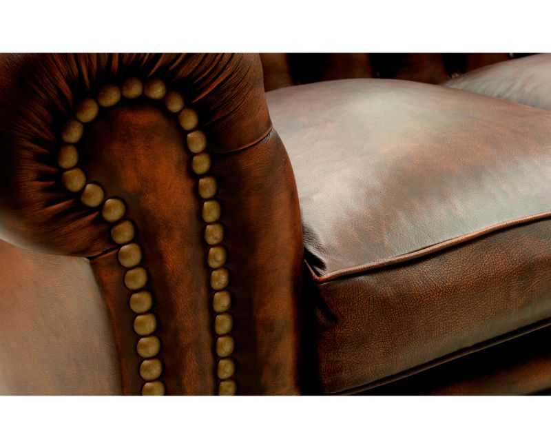 Sofá de Piel natural vintage KENSINGTON totalmente artesano, realizado con las técnicas más artesanas de la profesión tapicera española, entra para ver uno de los mejores sofás Chester de la Red.