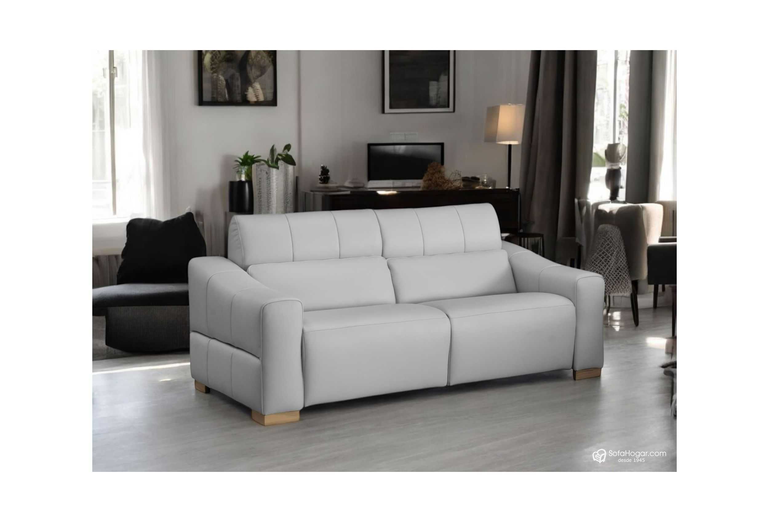 - Disponible en cuatro medidas/versiones: Sofás de 164, 184, 204 y 224cm. 2plazas, 2plazas amplias, 3plazas y 3 plazas amplias con RELAX doble motor o Fijo, la versión relax se desplaza simultáneamente el respaldo, asiento y se eleva el piecero.